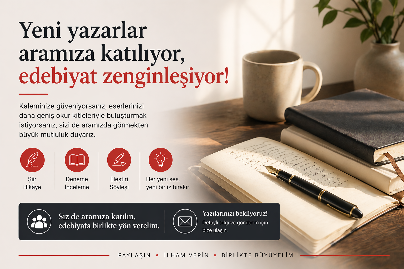 Ezgü Edebiyat Dergisi’ne yazar arıyoruz! Özgün öykülerinizi, şiirlerinizi ve denemelerinizi bekliyoruz.